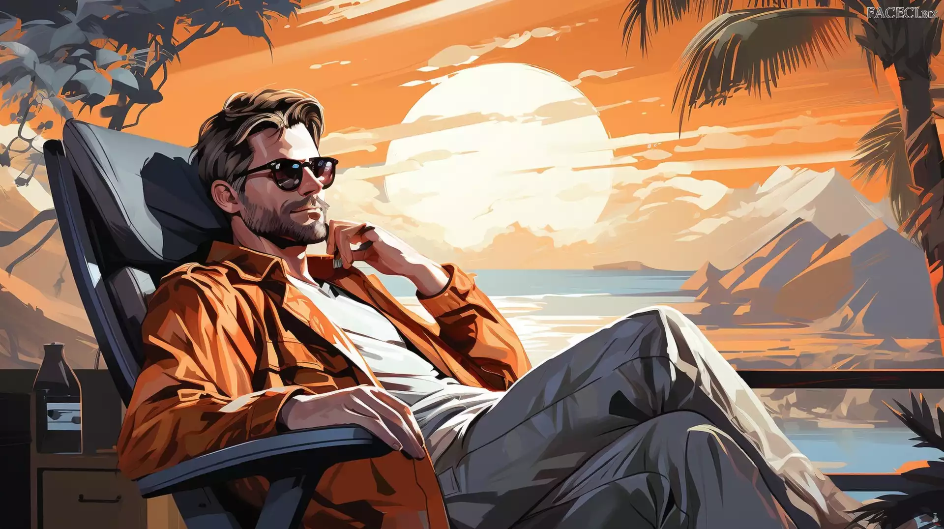 Góry, Zachód słońca, 2D, Mężczyzna, Leżak - faceci.biz